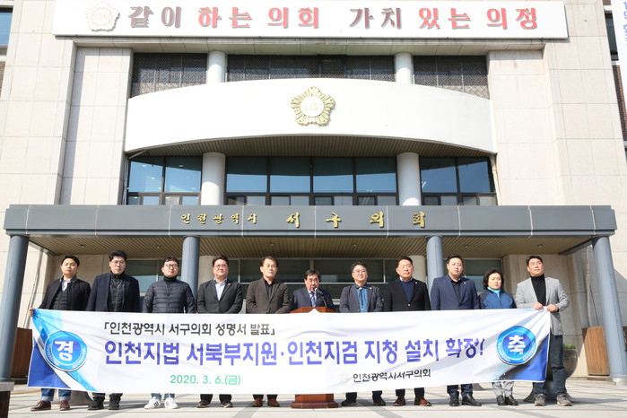 [인천=문찬식 기자] 인천 서구의회가 최근 인천지법 북부지원·인천지검 지청 검단 신도시 유치를 환영하는 성명서를 발표했다.