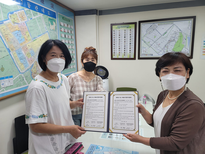 서울 양천구 신정2동 주민센터가 최근 이웃간 아름다운 나눔문화를 실천하는 18번째 ‘착한가게 협약’을 ‘국선생’과 체결했다. 이번 협약에 따라 국선생은 매월 3만원 상당의 국과 반찬을 저소득 취약계층에 지원하기로 했다. 사진은 협약식에서 관계자들이 기념촬영을 하는 모습.(사진제공=양천구청)