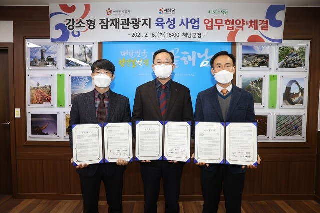 [해남=정찬남 기자] 전남 해남군은 16일 오후 해남군청에서 강소형 잠재관광지 육성을 위한 업무협약을 체결했다.