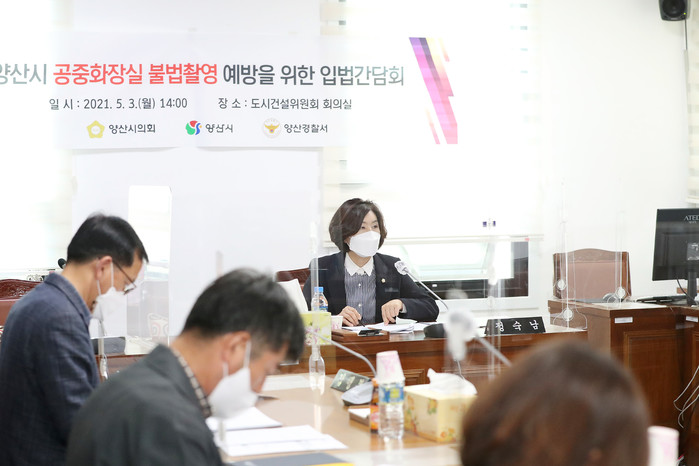 [양산=최성일 기자]양산시의회 정숙남 의원은 해마다 증가하는 공중화장실의 불법촬영범죄를 예방하기 위해 3일 집행부 공무원 및 양산경찰서와 함께 입법간담회를 개최하였다.