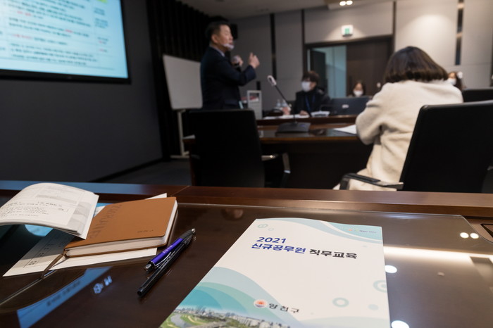 서울 양천구(구청장 김수영)는 15~16일 이틀간 2021년 신규임용된 공무원에 대해 직무교육을 실시한다. 신임 공무원 74명을 대상으로 공직수행에 필요한 예산 지출, 공문서 작성 등 직무교육과 친절교육 등 조직적응력 향상을 위한 소양교육을 회차별로 구분해 체계적으로 진행한다.