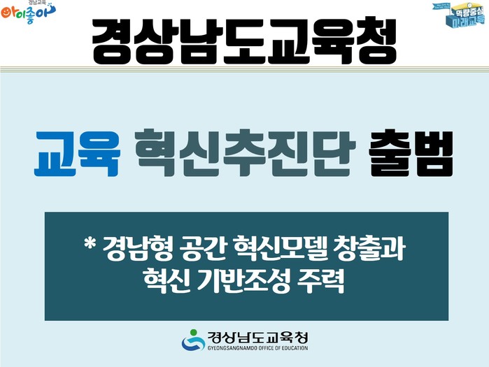 경상남도교육청(교육감 박종훈)이 교육 혁신추진단을 신설, 경남형 공간혁신모델 창출과 혁신기반 조성에 나섰다.