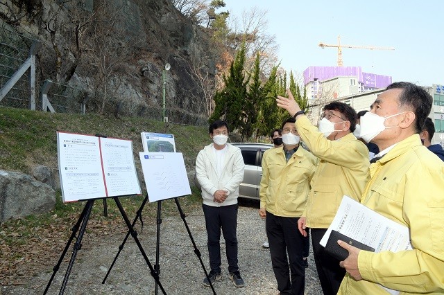 | ▲ 김종효 광주광역시 행정부시장이 10일 오후 해빙기 재난 취약시설인 용강지구 급경사지 붕괴위험지역을 방문해 안전관리 상태를 점검하고 있다. /광주광역시 제공 |