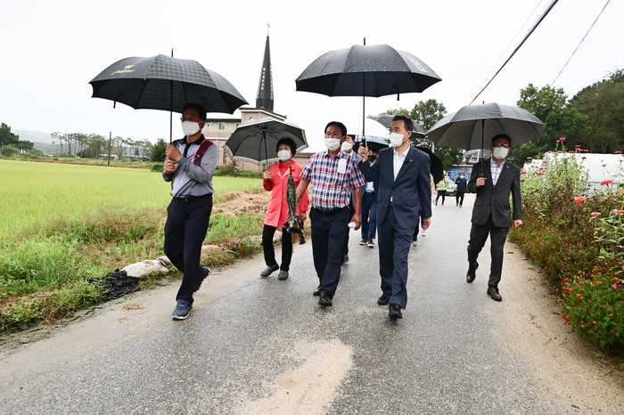 이항진 경기 여주시장은 7일 북내면 신남리에서 ‘주민과 함께하는 동네한바퀴’를 실시했다. 이날 이 시장은 마을을 한 바퀴 돌며 마을유래, 주민들의 사는 이야기 등을 청취하고 마을 발전방향을 논의했다. 사진은 이 시장(오른쪽 두 번째)이 마을주민들과 마을을 돌고 있는 모습. (사진제공=여주시청)