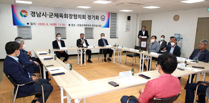 경남 시군구체육회장협의회(협의회장 이승화)가 16일 산청군 체육회 회의실에서 도내 각 시군체육회장이 참석한 가운데 정기회의를 가졌다.