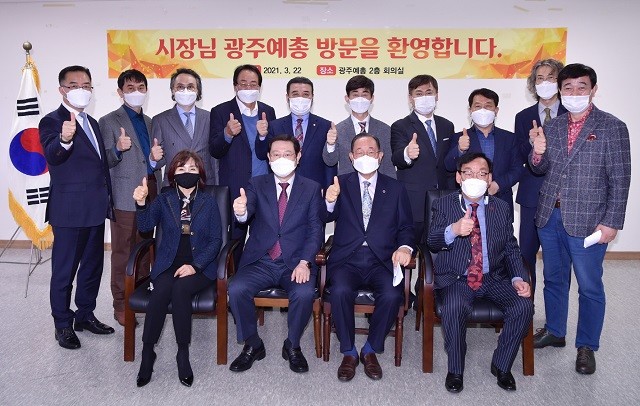 이날 이 시장은 광주예총회관을 방문해 임원식 광주예총 회장을 비롯해 10개 협회장들과 간담회를 갖고 코로나19로 큰 타격을 입은 문화예술계의 고충을 청취하고 대책 등을 논의했다.