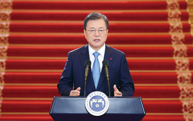문재인 대통령이 11일 청와대에서 신년사를 하고 있다.