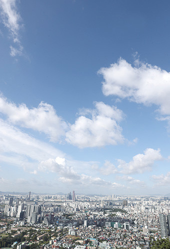 태풍이 물러간 8일 오전 서울 남산에서 본 파란 하늘에 구름이 어우러져 있다.