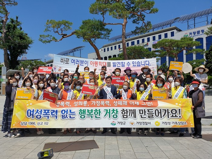 거창군은 군청 앞 로터리에서 거창군청, 거창경찰서, 거창군 아동위원회, 거창성가족상담소, 거창군 건강가정다문화지원센터, 거창여성회 및 거창군 드림스타트 등 관계 기관 및 단체 100여명이 참여한 가운데 ‘아동학대 및 여성폭력 예방 캠페인’을 개최했다고 16일 밝혔다. 이날 캠페인은 최근 천안과 창녕에서 연이어 발생한 아동학대 사건, N번방 사건과 같은 디지털 성폭력 및 성 착취 등 여성폭력 사건이 발생한 가운데 관내에서도 묻지 마 여성폭행사건이 발생함에 따라 군민들의 관심을 촉구하기 위해 추진됐다.