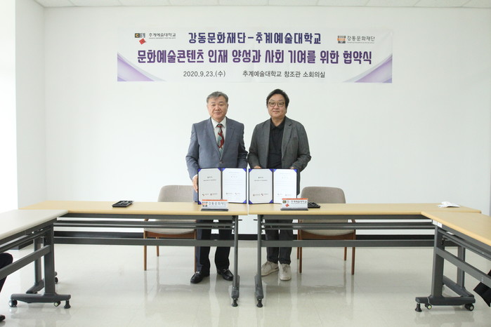 (재)강동문화재단 이제훈 대표이사와 추계예술대학교 임상혁 총장은 협약식에서 강동문화재단의 축적된 문화예술 프로그램과 추계예술대학교가 배출하는 인재가 만나 강동구를 비롯한 지역사회에 활발한 기여활동을 전개하기로 합의하였다.