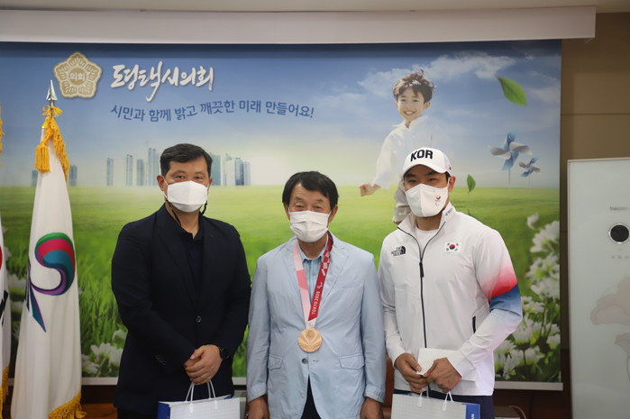 [평택=오왕석 기자] 평택시의회 홍선의 의장은 3일 도쿄 패럴림픽 남자 유도 81kg급 동메달을 차지한 이정민 선수를 격려했다.