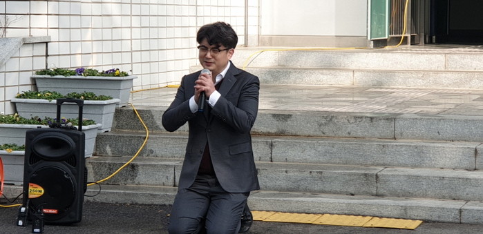 [목포=황승순 기자] 김훈 전 전남 목포시의원이 지난 26일 목포시의회 앞에서 기자회견을 열고 최근 무혐의 처분을 받은 ‘성희롱’ 의혹과 관련, “검찰은 나의 무고함을 밝혀 주어서 이제는 시민들이 누가 진실을 이야기 하고 있는지 알아야 할 때가 왔다“며 “앞으로도 명예회복을 위해 최선을 다 하겠다”고 말했다.