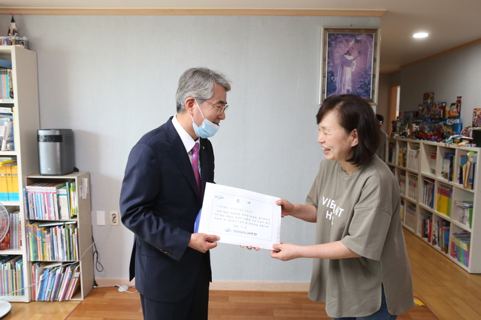 박종훈 교육감은 이날 오후 사천시 정동면과 진주시 명석면에 소재한 시설을 방문해 아동들과 관계자들을 만나 격려하고 선물을 전달했다.