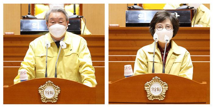 | ▲ 김철수 운영위원장(왼쪽), 이명숙 행정기획위원장(오른쪽). (사진제공=구로구의회) |