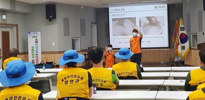 이날 교육은 함양소방서 정종윤 소방교를 교관으로 물놀이 안전관리 요원 등 24명이 참여한 가운데 물놀이 장비를 이용한 수상구조 요령, 물놀이 안전장비 사용법, 심폐소생술 등 실제 현장에서 발생할 수 있는 안전사고에 대한 대응 능력을 강화하는 교육으로 진행됐다.