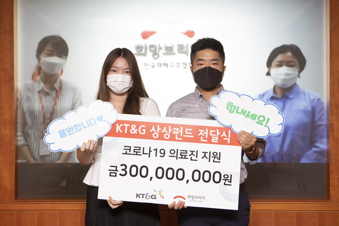 [시민일보 = 홍덕표 기자] KT&G는 코로나19와 폭염 장기화로 어려움을 겪는 의료진과 사회취약계층을 위해 계열사인 KGC인삼공사와 KT&G장학재단 등과 함께 총 15억원 상당의 지원금과 물품을 전달한다고 4일 밝혔다.