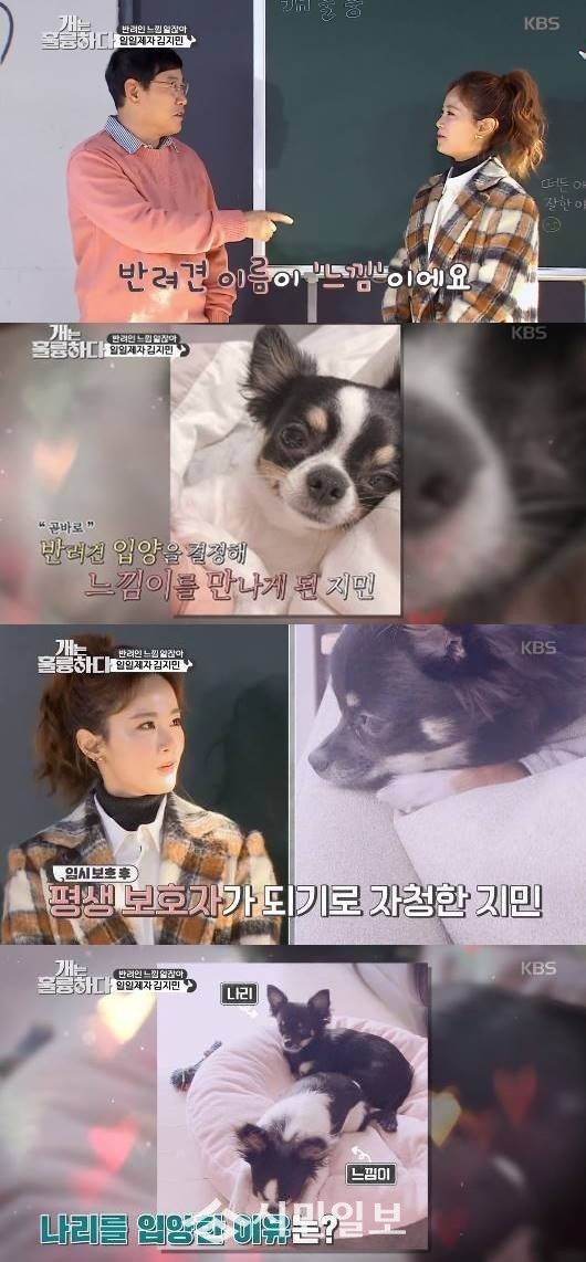 김지민은 반려견 느낌이와 나리를 키우고 있다고 밝혔다. 김지민은 첫째 느낌이에 대해 “장모 치와와다. 강아지 프로그램 일일 알바생으로 갔다가 매료돼서 바로 그 길로 입양했다. 4년째 키우고 있다”고 설명했다.