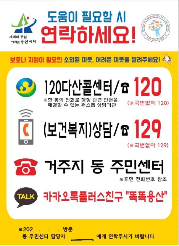 | ▲ 복지상담 안내 스티커. (사진제공=용산구청) |