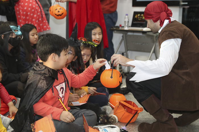 서울 성동구는 최근 금호동 독서당인문아카데미 2층 금호글로벌체험센터에서 '핼러윈데이 페스티벌'을 개최했다. 사진은 핼러윈데이 페스티벌에 참가한 아이들이 가장 무서운 복장을 한 사람을 뽑기 위해 호박모양의 통에 투표를 하고 있는 모습.(사진제공=성동구청)