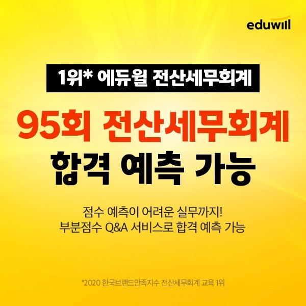 [시민일보 = 여영준 기자] 종합교육기업 에듀윌(대표 박명규) 전산세무회계는 지난 95회 전산세무회계 시험을 상세하게 분석한 이론 기출해설 특강을 100% 무료로 공개한다고 15일 밝혔다.