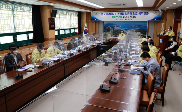 | ▲ 완도해양치유공단 설립 타당성 검토 용역결과 최종보고회 및 검증 심의회 진행 모습. (사진제공=완도군청) |