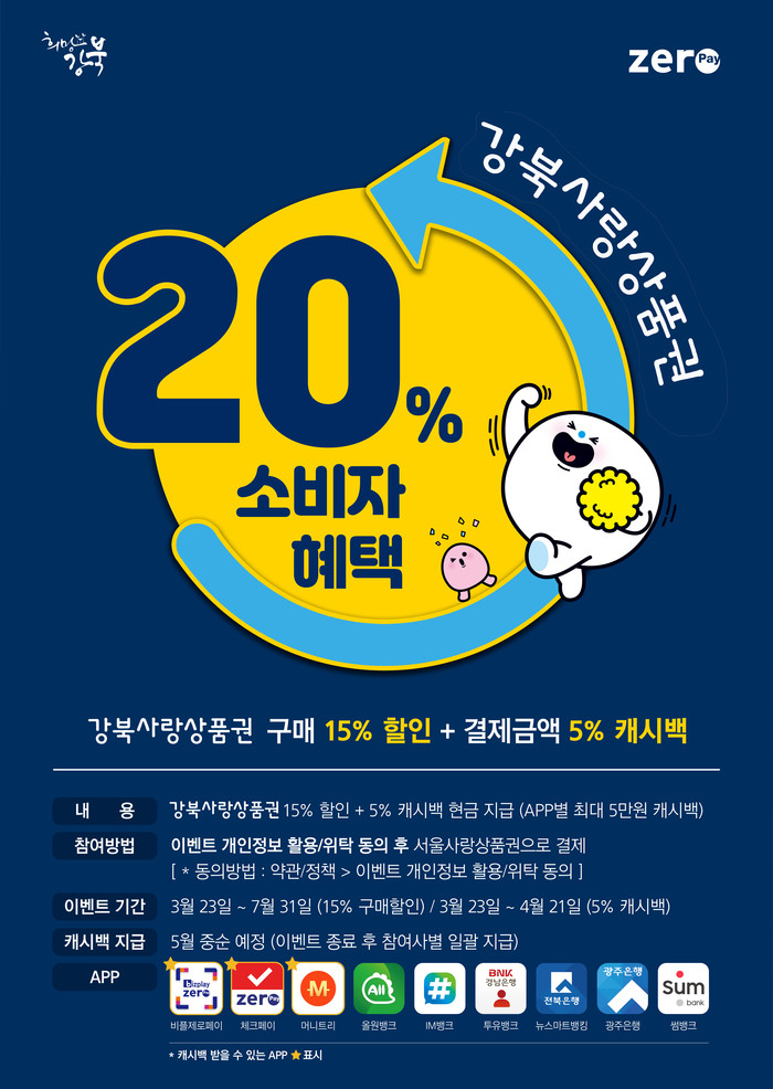 [시민일보 = 홍덕표 기자] 서울 강북구(구청장 박겸수)가 코로나19로 인해 어려움에 처한 소상공인을 돕기 위해 '강북사랑상품권'의 소비자 혜택을 확대한다.