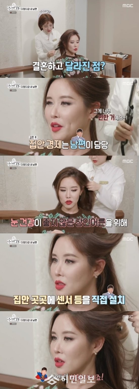 이어 채리나는 "신랑이랑 저희 어머니, 아버지랑 같이 산다. 아버지가 눈이 잘 안 보이니까 신랑이 아버지 다칠까 봐 (집안) 구석구석 센서등을 달아놨다. 우리 어머니가 기침이라도 하면 '병원 가요'라면서 바로 병원에 모시고 간다"라며 자랑했다.