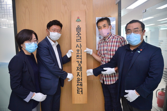 울주군은 16일 군청 6층 일자리정책과에 신설되는 사회적경제지원센터 현판식을 열고 본격적인 운영에 나섰다.