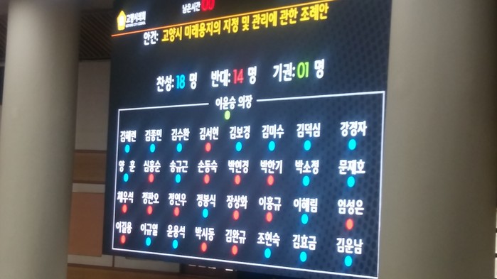 고양시의회, ‘족쇄 조례안’ 통과...찬성18,반대14,기권1
