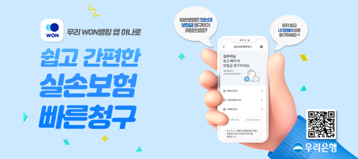 '실손보험 빠른 청구 서비스'는 실손보험 가입자가 진단서 등 종이서류 없이도 모바일뱅킹 앱(App) WON뱅킹을 통해 간편하게 신청할 수 있는 서비스로, 우리은행은 병원 입점 영업점에 스탠드 배너를 포함한 각종 안내물을 설치해 고객들이 병원 진료 이후 신속하게 보험금을 청구할 수 있도록 적극 안내하고 있다.