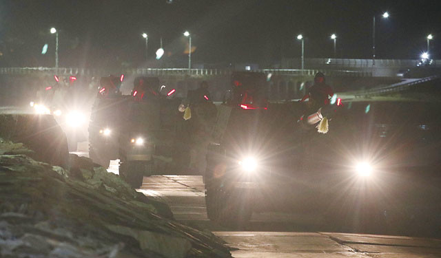 17일 오후 인천 옹진군 대연평도에서 해병대원들이 K9 자주포를 동원해 서북도서 순환훈련을 하고 있다.