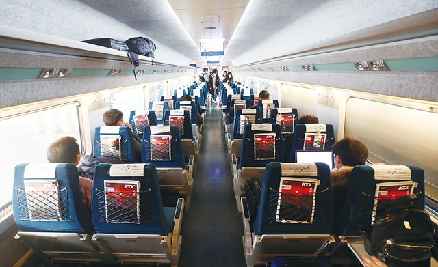 수도권의 ‘사회적 거리두기’ 2.5단계 격상 첫날인 8일 서울역에서 시민들이 창 쪽 좌석에 앉아 있다. 한국철도(코레일)는 이날부터 오는 28일까지 3주간 모든 KTX, 새마을호, 무궁화호, ITX-청춘 등 여객열차 승차권을 ‘창 쪽 좌석’만 발매한다.