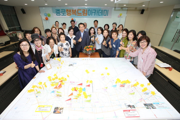 | ▲ 2017년 진행된 종로행복드림아카데미1기 참가 주민들과 김영종 구청장. (사진제공=종로구청) |