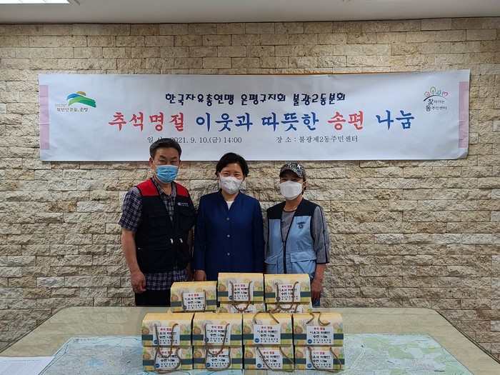[시민일보 = 이대우 기자] 서울 은평구(구청장 김미경) 불광제2동은 최근 한국자유총연맹 불광2동분회와 추석맞이 송편 나눔 행사를 진행하였다.