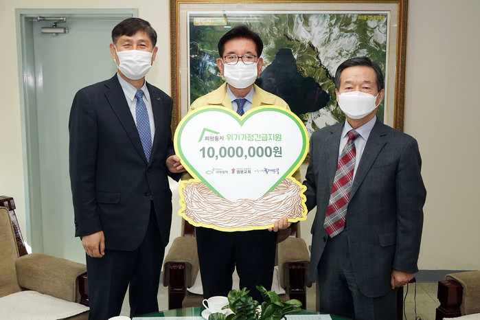 서울 동대문구는 지난 11일 희망친구 기아대책로부터 위기 아동·청소년 가정을 긴급지원하기 위한 ‘희망둥지 기금’ 1000만원을 전달받았다. 사진은 전달식에서 유덕열 구청장(가운데)과 관계자들이 기념촬영을 하는 모습. (사진제공=동대문구청)