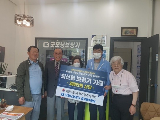 굿모닝보청기는 매년 ‘잃어버린 소리 찾기 봉사단” 프로그램을 운영하면서 전국 대한노인회의 수많은 난청인에게 300만원 상당의 보청기를 꾸준히 기증하고 있으며, 난청으로 인해 불편을 겪는 경기 광주 지역 어르신들에게도 꾸준한 보청기 기증을 진행하고 있다.