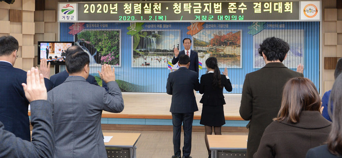 거창군이 시행하고 있는 청렴시책은 ▲직원참여 청렴방송 ▲부서장 청렴모니터링 ▲청렴마일리지제도 ▲민간암행어사 ▲청렴 상시자가학습 ▲청렴동아리 청아림 운영 ▲청렴식권제 등이 있으며, 내년에는 청렴도 1등급 달성을 위해 청렴도 취약분야를 점검하고 군 실정에 맞는 효과적인 시책을 발굴해 시행할 계획이다.