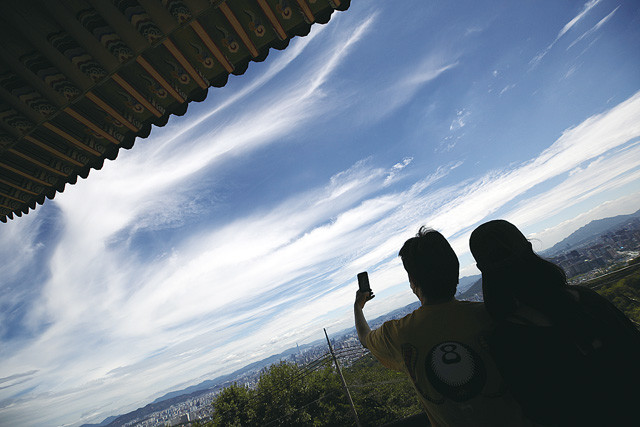 절기상 초복인 16일 전국이 내륙을 중심으로 낮 기온 30도 내외를 오르내리며 더운 날씨를 보이고, 경기 동부, 강원 영서, 충북 동부, 경북 북부, 전라 내륙 지역에는 오후부터 밤 사이 소나기가 내리겠다. 사진은 초복을 하루 앞둔 15일 오후 서울 북악 팔각정 일대에서 바라본 하늘.