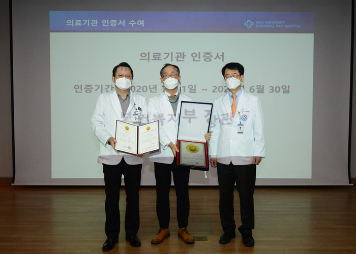 인제대학교 해운대백병원(원장 최영균)이 코로나19로 어려운 여건 속에서도 의료서비스 질과 환자안전 수준을 신뢰할 수 있는 의료기관으로 인정받아 보건복지부로 부터 3주기 '의료기관 인증'을 받았다.