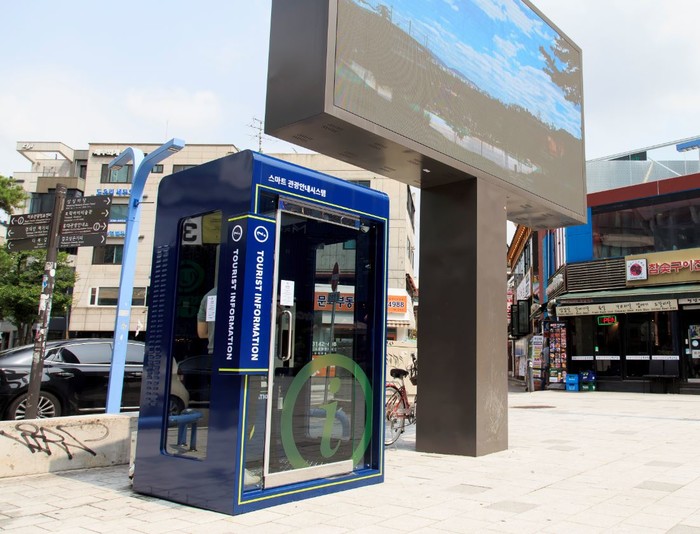 | ▲ 홍대 걷고 싶은 거리에 야외 부스 형태로 설치된 24시간 스마트 헬프데스크. (사진제공=마포구청) |