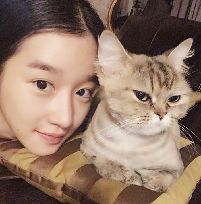 공개된 사진 속 서예지는 고양이와 함께 웃으며 카메라를 쳐다보고 있다.
