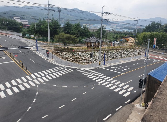이번 공사시행으로 광장내부 통과도로(L=60m, B=20m)와 기존도로 확장(L=62m, B=15m), 일부구간 공원 조성해 획기적인 교통통행여건 및 홍룡사 진입부 경관이 크게 개선됐다.