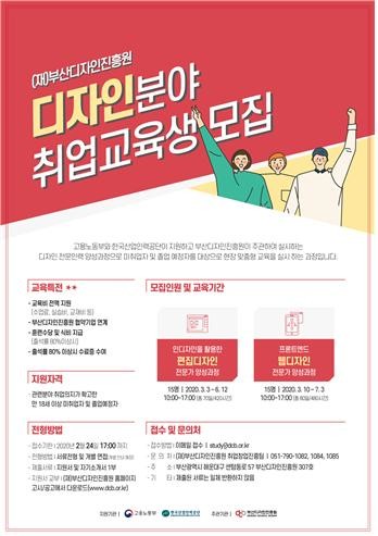 강의는 디자인교육전문가 및 기업체 실무진이 진행하며, 수료 후에는 수료증 수여 및 (재)부산디자인진흥원의 협약기업과 연계한 취업지원 혜택이 주어진다. 훈련수당 및 식비(80%이상 출석 시)가 별도로 제공되며 교육료는 전액 무료다.