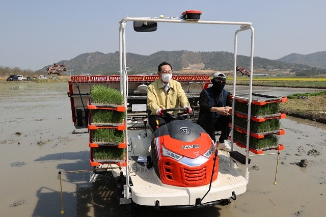 한편 이번 모내기 행사에는 명현관 해남군수가 육묘상 관주처리와 자율주행 이앙기를 활용한 모내기 시연도 선보였다.