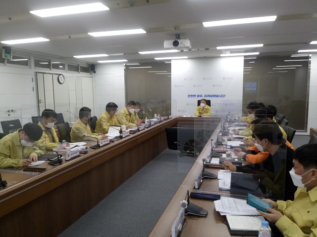 | ▲ 광주광역시, 지난 27일 시 재난안전대책본부회의실에서 강풍, 대설, 한파 등 복합적인 기상 상황을 예상해 시와 5개 자치구 재난 협업부서가 참여한 합동상황판단 회의 개최 / 광주광역시 제공 |