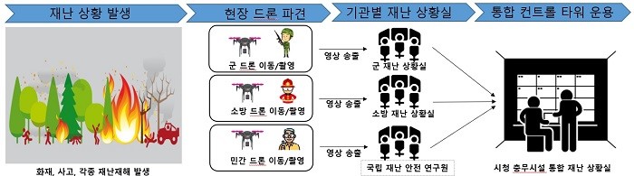 이후 통합드론 영상정보 공유체계 구축을 위한 실무회의와 관계기관으로 구성한 통합드론운영 협업팀(TF)을 운영해 기관별 통합운용을 위한 제한사항 조치, 통합네트워크 구축방안, 기관별 보안사항, 드론 운용 간 사전허가 사항 등 효율적인 통합운영방안을 마련했다.