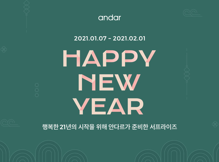 한편, 안다르의 신축년 첫 프로모션인 안다르 해이 뉴이어와 관련된 자세한 내용은 공식 홈페이지와 공식 인스타그램을 통해 확인할 수 있다.