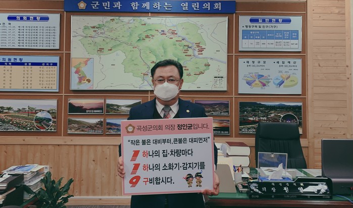 정 의장은 “화재 예방의 첫 걸음은 가정 내 소방시설 설치다.”며, “모두의 안전을 위해 소화기, 감지기 설치에 군민 여러분의 많은 동참을 부탁드린다.”고 말했다.