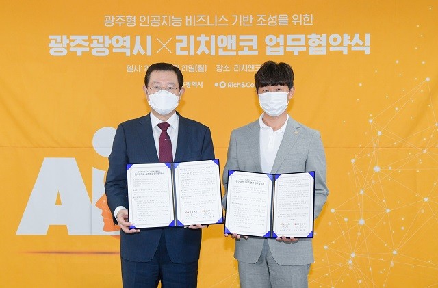 광주광역시와 ㈜리치앤코는 21일 오후 리치앤코 서울 본사에서 광주형 인공지능 비즈니스 기반 조성을 위한 36번째 업무협약을 체결했다.