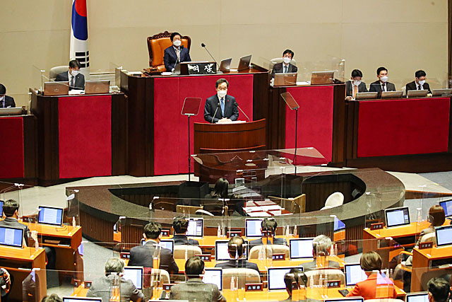 더불어민주당 이낙연 대표가 2일 오전 서울 여의도 국회 본회의에서 교섭단체 대표연설을 하고 있다.